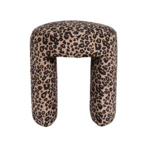 Modern Fashion Series Leopard Print Creative Ottoman, Luxury Animal Pattern Upholstered Footstool, Unique U-Shaped Vanity Stool for Living Room, Bedroom & Artistic Interior Decor