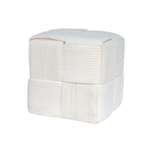 Modern Minimalist Woven Fabric Pouf – Creative Square Ornament, Premium Hand-Crafted Ornaments for Home Decor, White Woven Texture Ottoman, Ideal Living Room Footstool, Shoe-Changing Stool and High-End Decor Display