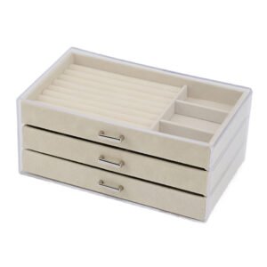 3-Layer Jewelry Box Organizer with Drawers – Velvet Lined Jewelry Storage Box for Rings, Earrings, Necklaces
