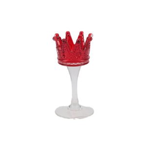 Creative Crown Shape Glass Candle Holder, Red Tall Stem Glass Candle Stick Holder, Luxury Romantic Dinner Decoration, Perfect for Holiday Parties, Weddings, and Home Decor