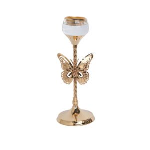 European Vintage Butterfly Design Crystal Candle Holder, Gold Metal Twisted Pillar, Elegant Glass Cup Top, Exquisite Tabletop Candle Holder Decoration, Wedding Centerpiece