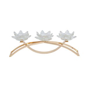 European Art 3-Arm Lotus Candle Holder – Luxurious Golden Arch Crystal Candle Holder, Exquisite Hand-Cut Glass Lotus Centerpiece, Modern High-End Metal Candelabra for Wedding Gifts, Zen Meditation and Festive Dinner Decor