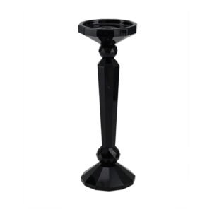 large-sized Elegant Clear Crystal Geometric Candle Holder with Black Base – 26.5cm Modern Candle Stick Holder for Table Centerpiece, Wedding, or Luxury Home Décor Display