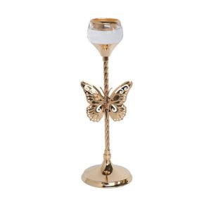 large-sized European Vintage Butterfly Design Crystal Candle Holder, Gold Metal Twisted Pillar, Elegant Glass Cup Top, Exquisite Tabletop Candle Holder Decoration, Wedding Centerpiece