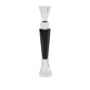 large-sized Modern Light Luxury Black and Clear Sectional Crystal Candlestick, Geometric Cut Stem Crystal Candle Holder, 30.5cm Tall Elegant Table Decoration/Wedding Centerpiece Home Decor