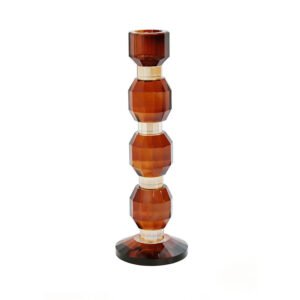 large-sized Modern Luxury Amber Geometric Layered Crystal Candle Holder, High-end Artistic candle holder for Home Tabletop Decor, Creative Transparent crystal candle holder for Weddings and Dinner Party Display, Stylish Geometric Structure Luxury Gifting Solution