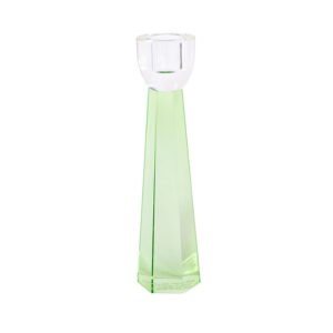 large-sized Modern Minimalist Two-Tone Glass Candle Holder – Artistic Light Green Geometric Tapered Base Crystal Candle Holder, Clear Tulip-Shaped Cup, High-End Table Centerpiece and Refreshing Home Decor Gift