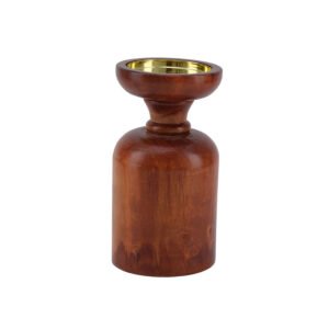 middle-sized Modern Vintage Solid Wood Handcrafted Candle Holder with Premium Brass Insert, Nordic Aesthetic Wooden Candle Holder for Tabletop Decor, Artistic Taper Stem Stand for Dinner, Weddings & Premium Gifting