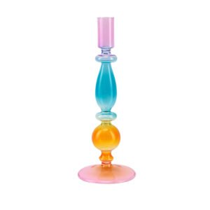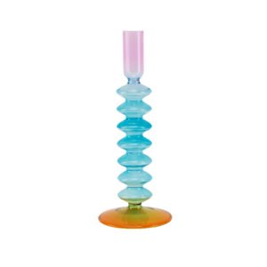Modern Art Gradient Gourd Glass Candle Holder – Creative Color-Blocked Layered Design Candle Holder, Premium Hand-Blown Glass Candle Holder for Table Decor, Nordic Style Ambiance Lighting, Ideal for Home Decor, Wedding Centerpiece and Personalized Gift