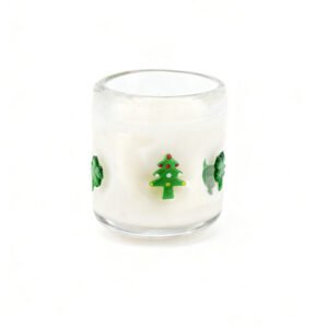small-sized Christmas Scented Candle in Embossed Glass Jar – Festive White Soy Wax Candle with 3D Christmas Tree & Lucky Clover Icons, Decorative Candle Jars for Holiday Home Decor, Winter Seasonal Gift, Stress Relief & Aromatherapy