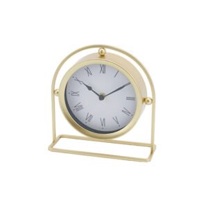 Gold Metal Arched Desktop Clock with Roman Numerals, Elegant Round Clock for Home & Office Decor