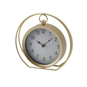 Modern Gold Desk Clock with Round Frame, Minimalist Tabletop Decorative Clock for Home, Office, or Bedroom, Silent Non-Ticking Metal Desk Clock