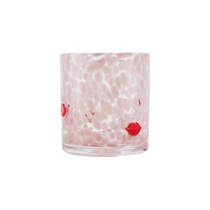Pink Speckled Texture Glass Tumbler, Playful Red Lip Embossed Accent, Whisky/Juice Drinking Cup, Cute Chic Home Decor Ornament Gift