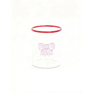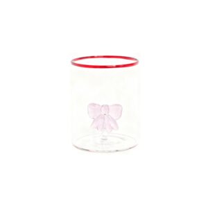 Modern Minimalist Clear Glass Cup with Red Rim – Features Delicate Pink Glass Bow-knot Decoration, Versatile Makeup Brush Holder & Drinking Cup, High-End Home Decor, Sophisticated Desktop Ornament, Romantic Aesthetic Glass Cup, Dreamy Gift for Her