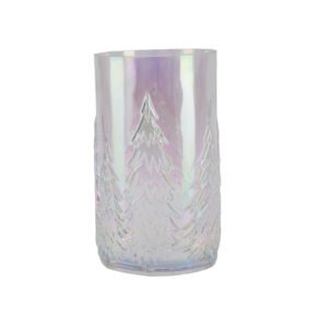large-sized Modern Iridescent Embossed Glass Cup – Creative Frosted Forest Tree Texture Glass Vase (Cup), Nordic Style Premium Rainbow Candle Holder for Holiday Ambiance, Ideal Aurora Home Art and Winter Gift