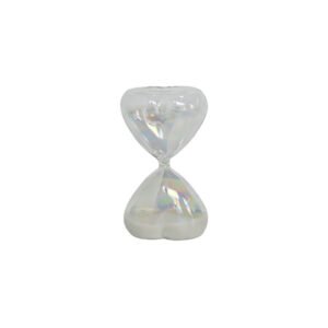 Luxury Iridescent Heart-Shaped Glass Hourglass – Creative Romantic Sand Hourglass with White Sand, Exquisite Handcrafted Glass Hourglass Desktop Decor Art Piece, Modern Aesthetic Hourglass Sand Timer for Home Office Display, Premium Gift for Anniversaries & Valentine’s Day