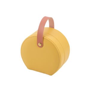large-sized Round Yellow Jewelry Box with Leather Handle, Small Portable Storage Case for Women, Decorative Organizer for Rings, Earrings, and Accessories