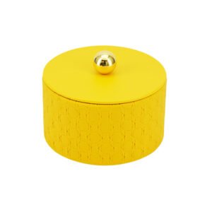 large-sized Round Yellow Jewelry Storage Box with Golden Knob, Small Organizer Case for Accessories