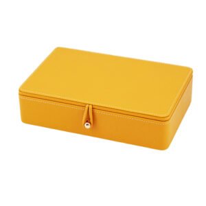 large-sized Mustard Yellow Faux Leather Jewelry Box with Drawstring Closure, Rectangular Storage Box for Rings, Earrings, Necklaces
