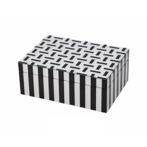 large-sized Rectangular Black and White Stripe Glass Jewelry Box with Mirrored Lid, Elegant Jewelry Box Packaging for Rings, Earrings, and Accessories