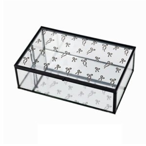 large-sized Bow-Print Glass Jewelry Box with Black Metal Frame, Decorative Jewelry Storage Box for Home, Vintage-Style Organizer for Accessories