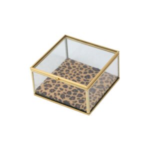 Luxury Glass Jewelry Box with Leopard Print Base, Gold Frame Square Box Jewelry Boxes Organizer, Stylish Girls Jewelry Box for Storage and Display