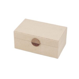 Luxury Leather Jewelry Box with Textured Finish and Round Golden Button, Elegant Organizer for Rings, Necklaces and Earrings