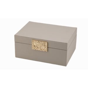 Modern Gray Wooden Jewelry Box with Golden Accent Plate, Large Rectangular Jewelry Box Organizer with Lid, Elegant Storage Box for Necklaces, Bracelets, and Girls Jewelry