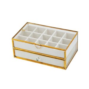 Luxury Glass Jewelry Box with 2 Drawers, Gold Metal Frame Transparent Jewelry Organizer, Elegant Jewelry Storage Box for Rings, Earrings, Necklaces, Makeup, Jewelry Boxes for Women