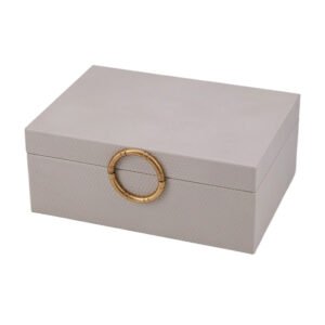 large-sized Elegant Light Gray Textured Leather Rectangular Jewelry Box, Bamboo Knot Gold Ring Clasp, Premium Jewelry/Watch Storage Jewelry Gift Box, Desktop Organizer