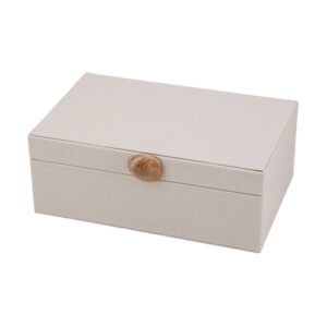 large-sized Elegant Light Beige Woven Texture Leather Rectangular Jewelry Box, Natural Agate/Amber Clasp, Premium Jewelry/Watch Storage Jewelry Gift Box, Bedroom Desktop Ornament