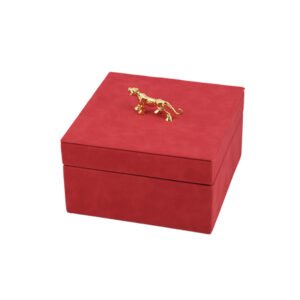 large-sized Luxury Red Velvet Jewelry Box with Gold Leopard Sculpture Lid, Square Jewelry Case Organizer, Exquisite Festive Jewelry Box Packaging, for Rings, Earrings, and Necklaces