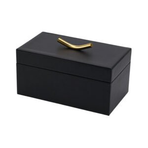 large-sized Luxury Black Rectangular Jewelry Box with Gold Curved Handle, Leather-Texture Lid, Elegant Decorative Organizer for Jewelry Storage, Jewelry Box Packaging & Package Box for Jewelry