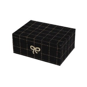 large-sized Luxury Black Velvet Plaid Jewelry Box – Modern Rectangular Keepsake Organizer with Sparkling Rhinestone Bow Clasp, Premium Storage for Rings, Necklaces & Earrings, Ideal Jewelry Gift Box for Women