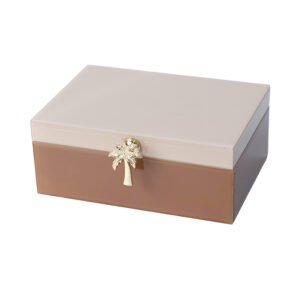 large-sized Modern Luxury Jewelry Box, Vintage Dual-Tone High-Gloss Jewelry Gift Box with Exquisite Gold Palm Tree Handle, Decorative Desktop Trinket Organizer, Elegant Keepsake for Women