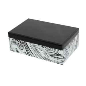 large-sized Modern Luxury Marble Pattern Mirrored Jewelry Box – Abstract Fluid Painted Storage Case, High-End Black Mirrored Lid Jewelry Gift Box for Precious Trinkets, Minimalist Home Aesthetic Art Decor