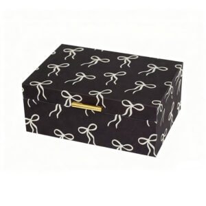 large-sized Modern Luxury Black Ribbon Bow Pattern Jewelry Box – Creative Printed Rectangular Desktop Organizer, High-End Artistic Jewelry Gift Box for Rings & Necklaces, Elegant Home Decor Aesthetic Storage