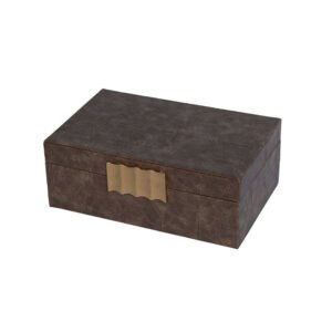 large-sized Modern Luxury Vintage Brown Leather Texture Jewelry Box, Hand-Stitched Grid PU Jewelry Box Organizer with Exquisite Wavy Gold Metal Clasp, Premium Jewelry Gift Box for Trinkets, Elegant Home Decor & Holiday Gift for Women