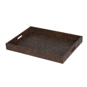 large-sized Modern Luxury Vintage Brown Leather Texture Tray, Hand-Stitched Grid PU Tray Decorative Storage, Large Capacity Trays with Handles for Ottoman & Coffee Table, Premium Home Decor & Organization Art