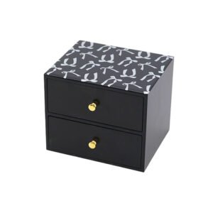 Bow-Patterned Black Jewelry Box with Gold Knobs, 2-Drawer Decorative Storage Box for Home, Stylish Organizer for Accessories