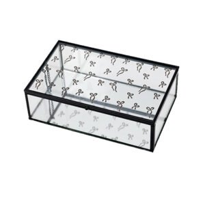 Bow-Print Glass Jewelry Box with Black Metal Frame, Decorative Jewelry Storage Box for Home, Vintage-Style Organizer for Accessories