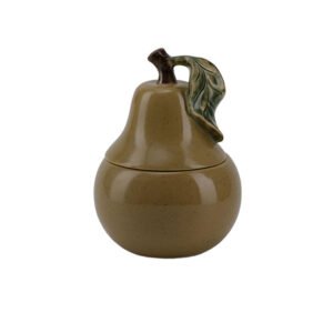 Brown Ceramic Pear Shape Storage Jar (Home Decor), Vintage Glazed Fruit Trinket Box, Lidded Tabletop Ornament, Perfect for Kitchen, Living Room, and Farmhouse Decor