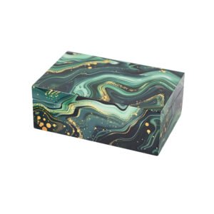Modern Abstract Emerald & Liquid Gold Marble Texture Jewelry Box – Artistic Printed Rectangular Jewelry Gift Box, Premium Keepsake Organizer with Gold Polka Dot Accents, Ideal Home Decor Accent and High-End Holiday Gifting