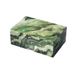 Modern Art Green Marble Texture Jewelry Box – Luxurious Gold-Veined Jewelry Box, Premium Large Capacity Jewelry Gift Box for Home Decor, Rectangular Hand-Crafted Organizer Case, Ideal Vanity Art Piece and Holiday Gift