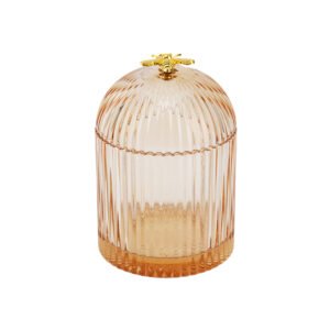 Modern Luxury Glass Jewelry Box with Golden Bee Lid, Elegant Ribbed Texture Jewelry Box for Rings and Earrings, Sophisticated Glass Trinket Jar Jewelry Gift Box for Vanity Decor and Home Organization
