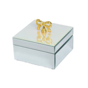 Modern Luxury Square Mirrored Jewelry Box – Features Elegant Gold Bow-knot Handle, High-Transparency Glass Jewelry Organizer, Sophisticated Jewelry Box, High-End Home Decor Ornament, Dreamy Jewelry Gift Box for Rings, Earrings, and Small Accessories