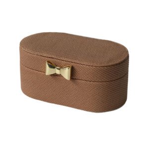 Modern Minimalist Brown Twill Fabric Jewelry Box, Exquisite Gold Bow Clasp Oval Jewelry Organizer, Portable Mini Jewelry Gift Box for Trinkets, Elegant Home Bedroom Decor & Ideal Gift for Women