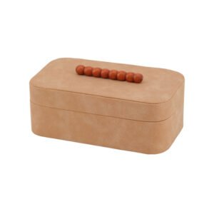 Modern Minimalist Matte Tan PU Jewelry Box, Sophisticated Jewelry Box with Unique Wooden Bead Strands Decor, Portable Rectangular Jewelry Gift Box for Rings & Necklaces, Artistic Desktop Jewelry Organizer for Home Decor
