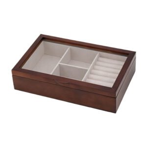 Modern Minimalist Walnut-Finished Solid Wood Jewelry Box with Glass Window, Large Capacity Multi-functional Jewelry Box for Watches & Accessories, Luxury Jewelry Gift Box Aesthetic Art Organizer for Home Decor