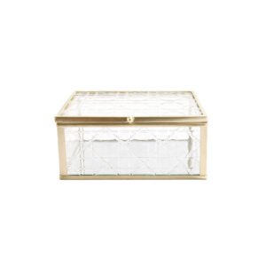Square Gold-Framed Cane Pattern Glass Jewelry Box, Retro Chic Decorative Tabletop Organizer with Clasp Closure, Multi-Purpose Display Case, Ideal Jewelry Gift Box
